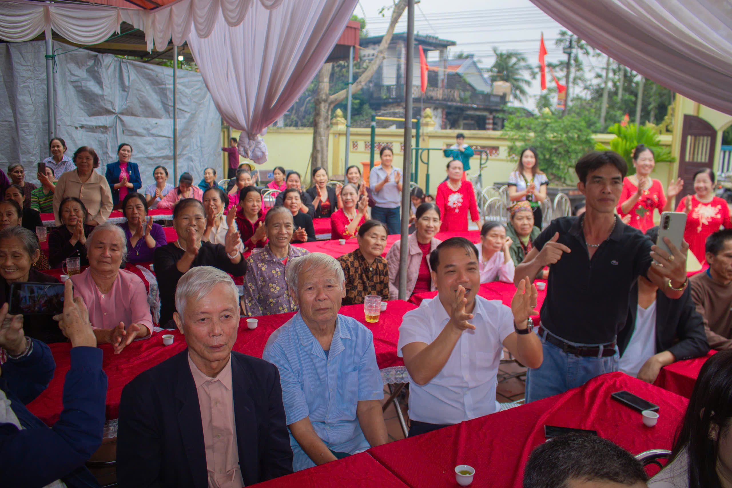 đượm tình làng nghĩa xóm. Dự và chung vui với bà con nhân